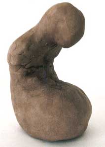 This is the piece in its pre-fireed state. It is now fired hard and red, like the others. larger plaster version