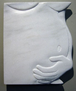 Most of these works are wired on the rear and hang on the wall like paintings, some are mounted on a marble base and a few are free-standing in larger blocks of stone.
